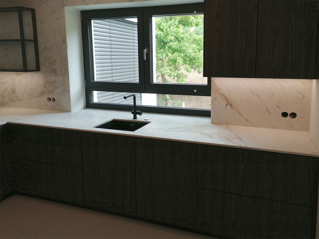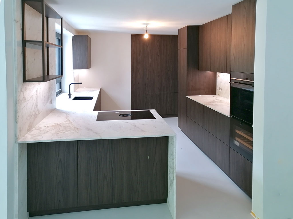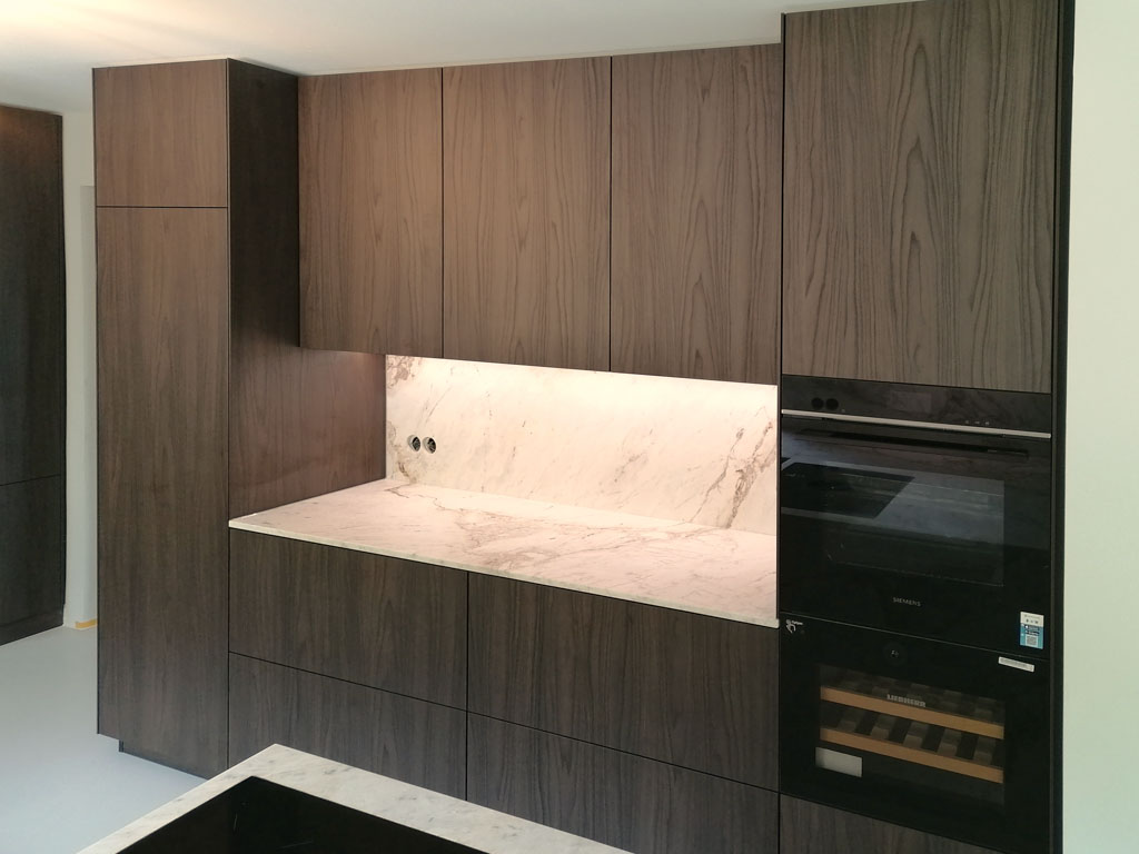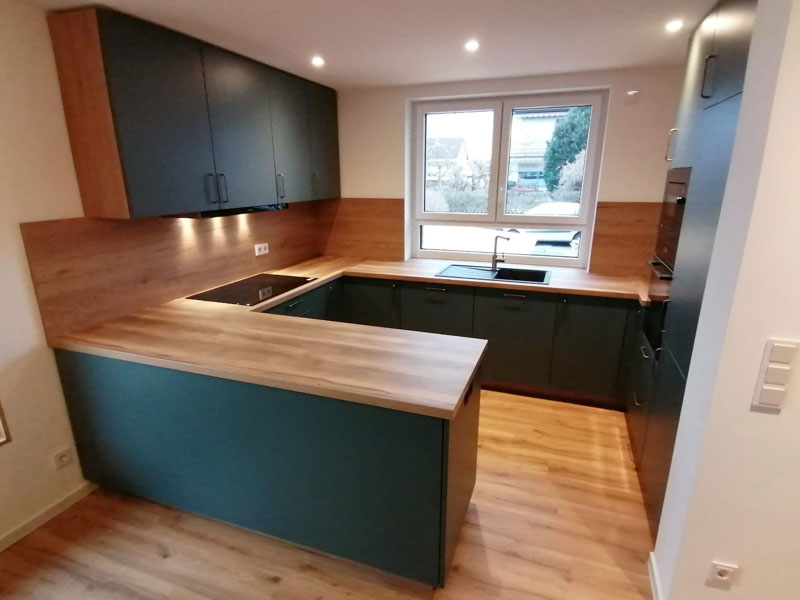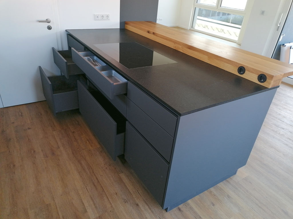 Bei unseren Einbauküchen hast du die freie Auswahl beim Material für die Arbeitsplatten – wie z.B. Holz, Marmor oder Granit. Unsere Einbauküchen vereinen Funktion und zeitloses Design. Auch auf kleinerem Raum: optimale Stauraumkonzepte, integrierte Geräte und hochwertige Materialien für einen aufgeräumten, ergonomischen Kochbereich.